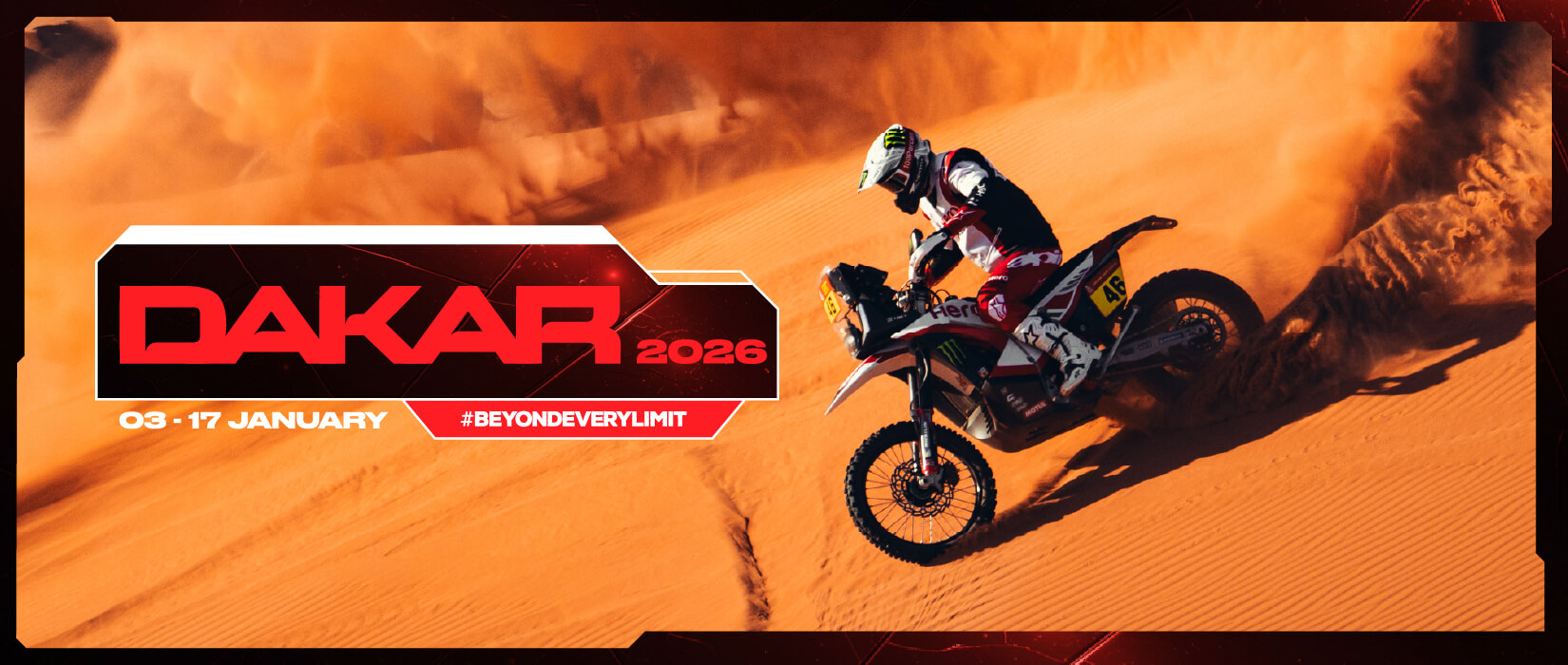 From January 3–17, Ross Branch, Nacho Cornejo, and Tobias Ebster charge into Saudi Arabia’s wildest stages - fesh-fesh basins, towering dunes, endless plateaus, and navigation riddles written by time itself.