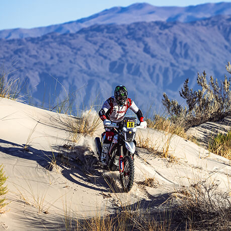 With 266 kms of mostly sand tracks and dunes, Stage 3 was a grueling one in true Dakar style. The loop around Belén - which also featured almost 200 kms in road sections - took the competitors northward to the Pie de Medano area of Catamarca, which the Latin American Dakar editions have visited several times. Tricky navigation was also on the menu for riders today, and they struggled to maintain their rhythm through the varying terrains. In the first part of the special, the rally also witnessed the highest dune peaks of this edition of the DR40 – riding at almost 3000 metres above sea level.